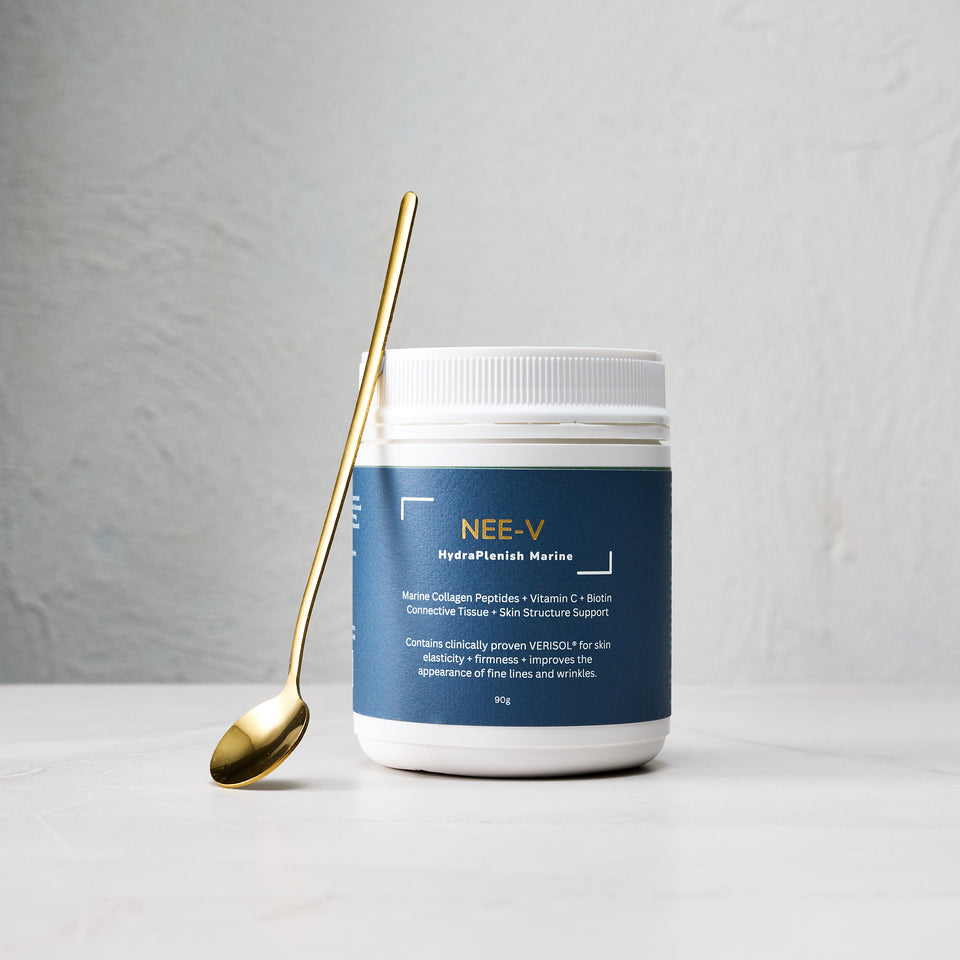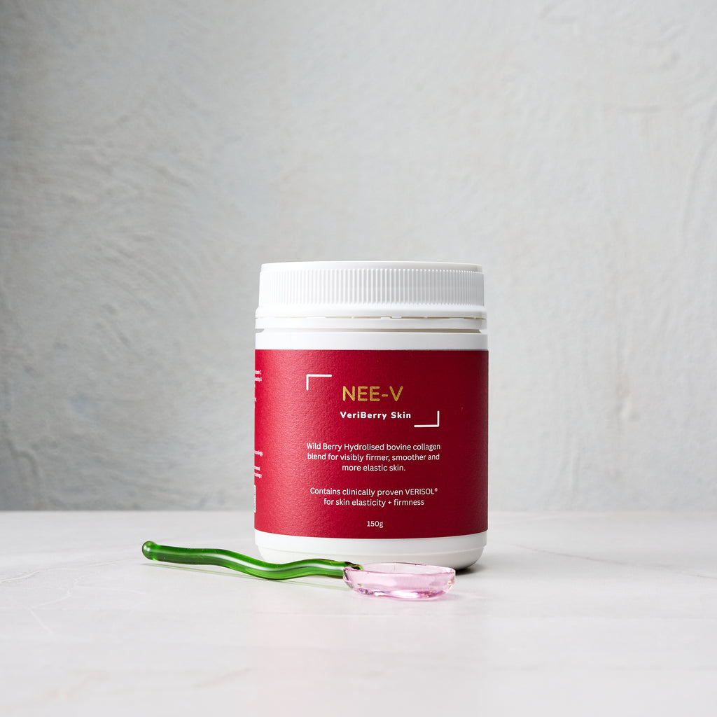 NEE-V Collagen is an Australian-made, science-backed collagen supplement powered by VERISOL® bioactive peptides clinically proven to improve skin elasticity, hydration, and strength.