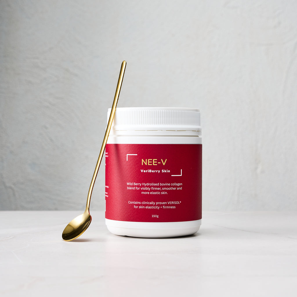 NEE-V Collagen is an Australian-made ingestible collagen powder of superior quality, bio-fermented, hydrolysed, and free from artificial colours or flavours.