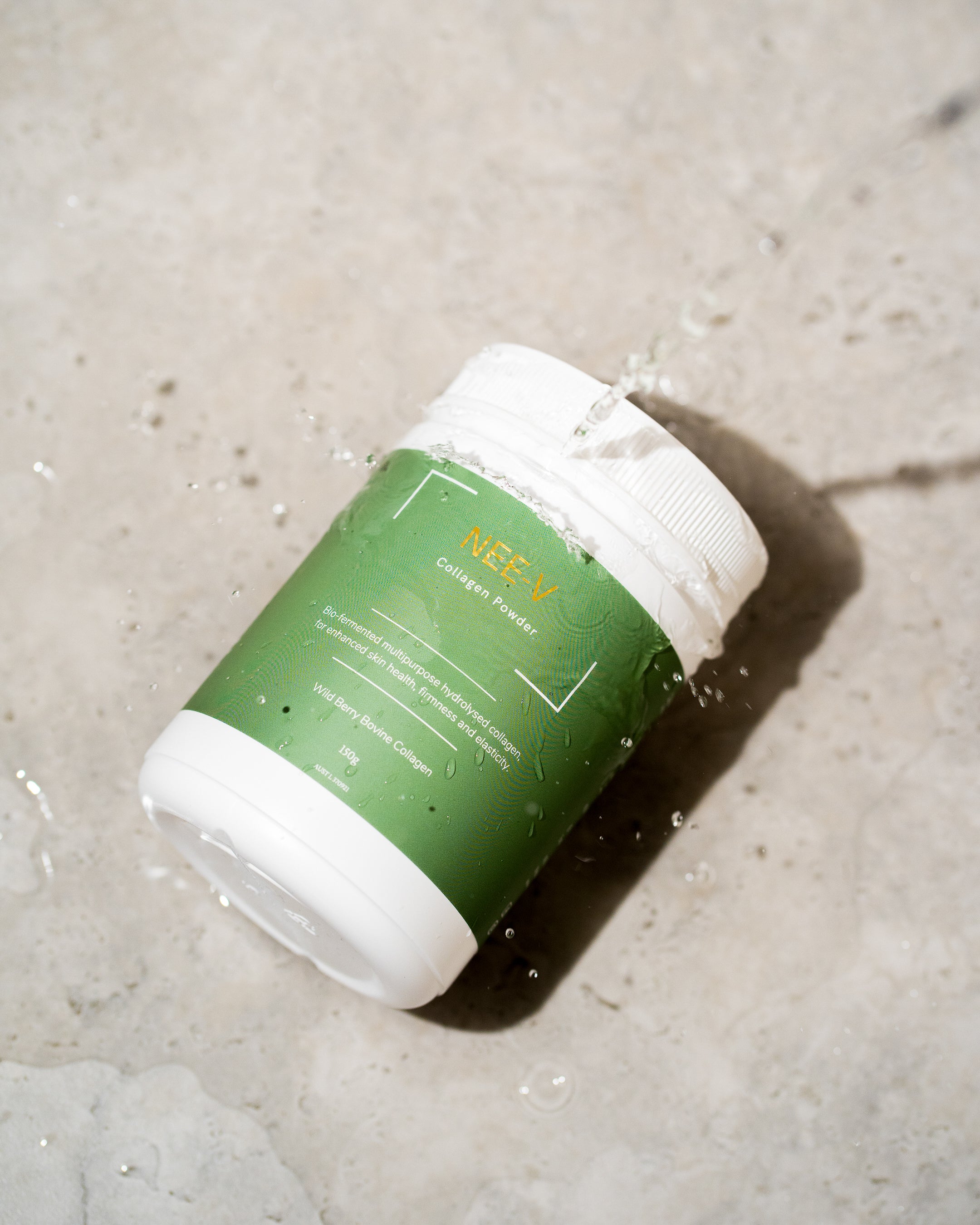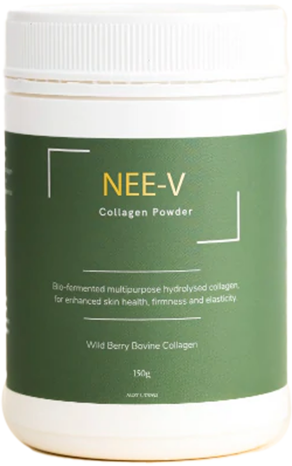 NEE-V collagen powder, a bio-multipurpose collagen powder that enhances skin health and promotes collagen formation. Scientifically proven to improve skin elasticity and firmness.